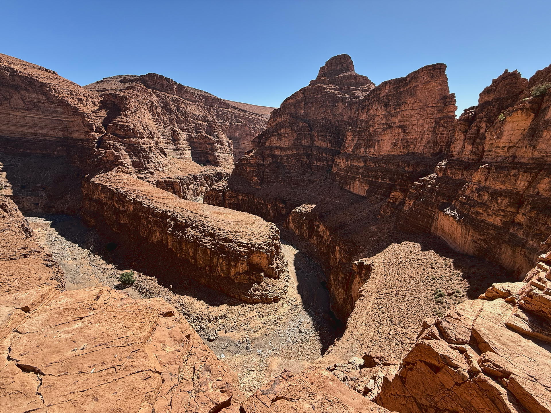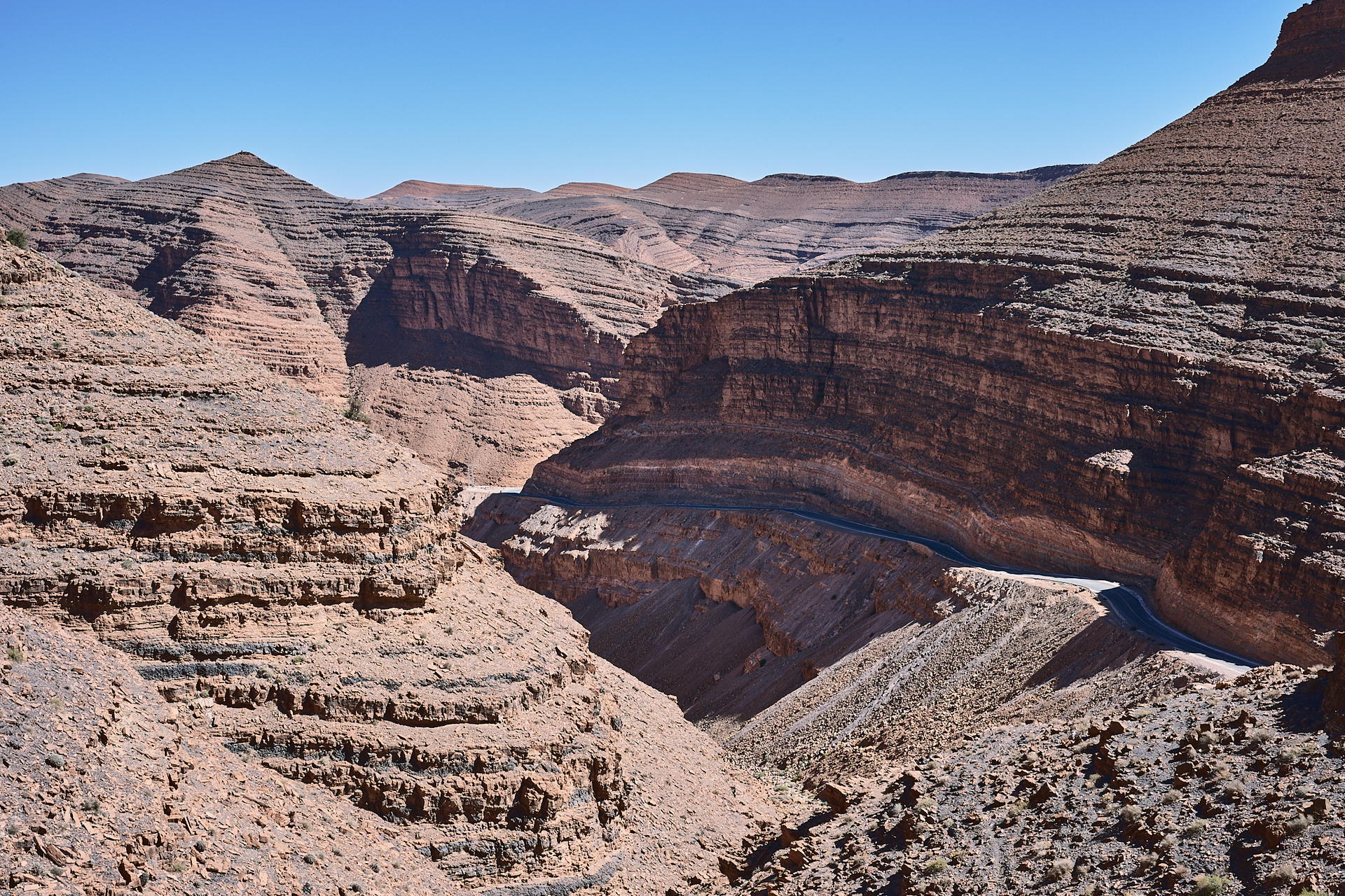 When we did our research about the pass we saw that a couple of highlights were on the way, but we would have to take a different road and circle back to the R107. The “Route Des Canyons” / “Route d’Aoukerda” is a tiny road with many switchbacks and we had heard rumours it might be inaccessible due to severe damage from heavy rainfall. It was a perfect coincidence that the traveller we met at the Tghit Canyon drove this very road a couple of days earlier and was able to confirm we would have no problem taking it. The only caveat was the town at the very end of the road is almost impossible to reach. A trade-off we were happy to accept.